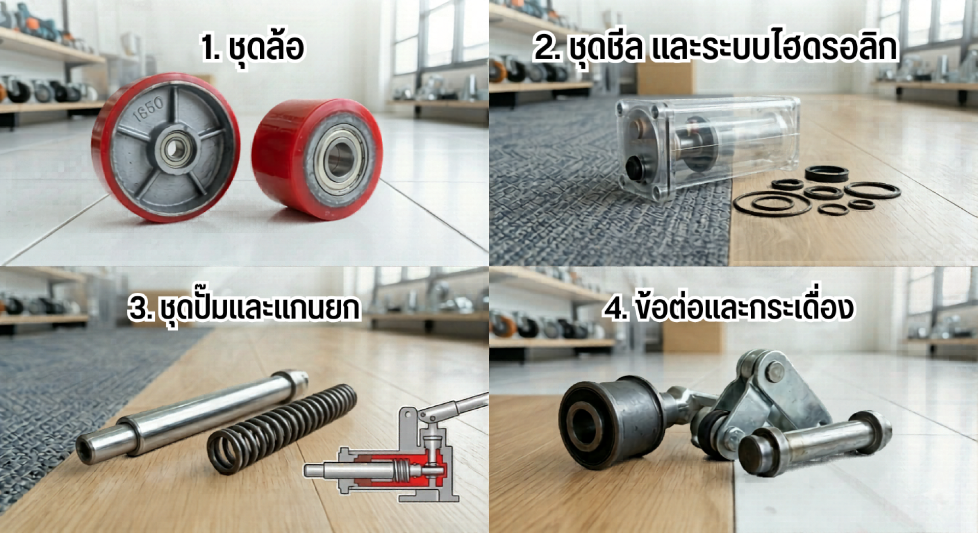 การลงทุนกับ แฮนด์ลิฟต์ (Hand Pallet Truck) มาในราคาหลักหมื่น แต่หลายครั้งต้องมาสะดุดเพราะอะไหล่สึกหรอ การรู้จักประเภทอะไหล่ที่ถูกต้องไม่เพียงแต่ช่วยให้เครื่องจักรทำงานได้เต็มประสิทธิภาพ แต่ยังช่วยให้คุณ "ไม่ต้องซื้ออะไหล่ผิดไซส์" จนเสียเงินทิ้งเปล่าๆ